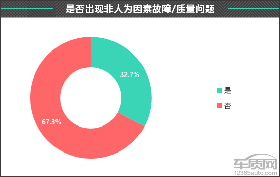 根据调查结果显示,在接收到的104份有效问卷中,有34份问卷显示车辆已经出现过非人为故障或质量问题,占比为32.7%。