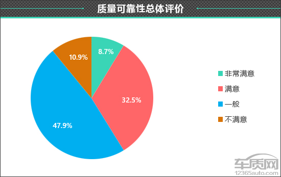 尽管部分车主对于2025款AION RT的一些问题有所抱怨,但大部分参与调查的车主对于其质量可靠性依然给出较为客观的评价。其中,认为“非常满意”和“满意”的车主占比分别为8.7%和32.5%;认为“一般”的车主占比为47.9%;明确表示“不满意”的车主占比为10.9%。