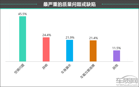 在对车主的进一步调查中我们发现,车身附件及电器出现非人为故障的占比相对较高,这也体现在“这款车最严重的质量问题或缺陷”调查结果中。经调查发现,车主对于2025款AION RT的抱怨大多集中在“空调问题”中,占比为45.5%。此外,部分车主表示该车还存在“异响”、“车身漏水”和“车载互联故障”等问题。