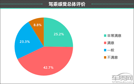 在2025款吉利银河A7驾乘感受的综合评价中,认为“非常满意”和“满意”的车主占比之和接近七成,仅8.8%的车主表示“不满意”。