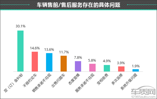 六、售前/售后服务:“定(订)金纠纷”抱怨较多