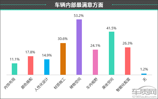 在针对2025款理想i6内部情况的调查中,有53.2%的车主对“储物空间”表示肯定。另外,“乘坐空间”和“材质做工”也得到了车主的广泛认可,占比分别为41.5%和30.6%。