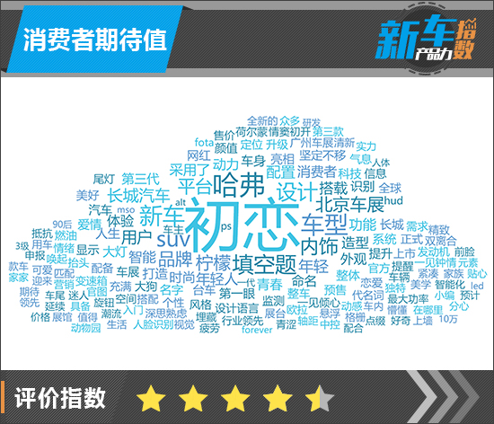对于哈弗初恋的消费者期待值,我们引入了车质网大数据采集和分析系统进行分析,从而得出目前网络上对于新车的舆情走向。