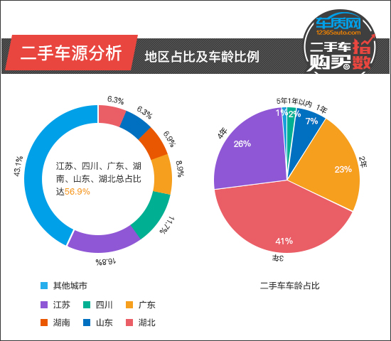三、二手车源分析:南方地区车源集中 2016款2017款占据了绝对主力