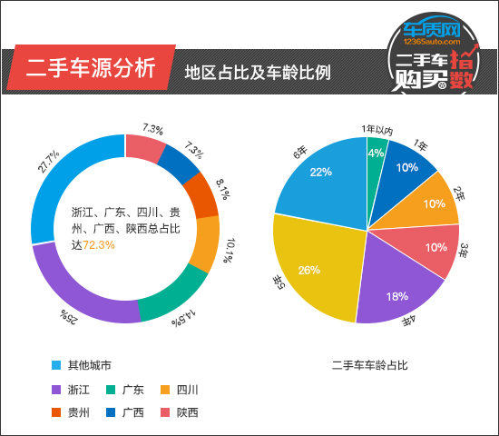 三、二手车源分析:南方地区车源较多 2015款车型占比最高