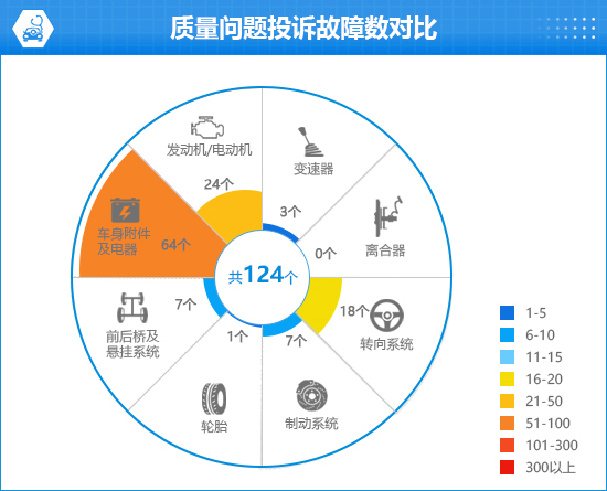 截至发稿,车质网共受理2024款比亚迪秦L投诉229宗,其中单纯质量类问题的投诉83宗,涉及124个故障点。在这些投诉中,车身附件及电器的占比较大。在此前“百名车主评新车”的质量可靠性调查中,车主对于其质量可靠性给出较为客观的评价。认为“非常满意”和“满意”的车主占比分别为15.1%和43.4%;认为“一般”的车主占比为34.9%;明确表示“不满意”的车主占比为6.6%。