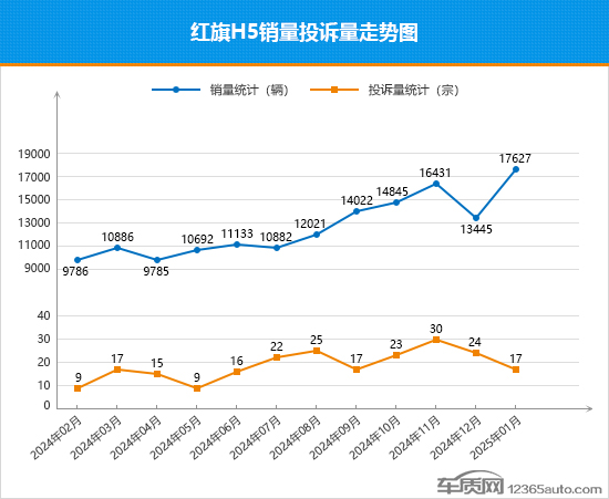 近几年,“燃油车不行了”、“燃油车已经走向末路”等唱衰的言论充斥网络。不可否认,新能源是大势所趋,但燃油车依旧有其生存发展的空间。这一点从2025年开年首月的销量成绩中便可见一斑,多款燃油主力车型市场表现强劲。作为其中的一份子,红旗H5在1月份也迎来了里程碑时刻,月销量连续第9个月破万,环比上涨31.1%,创造新的历史纪录。从其过去一年的销量变化可以看出,整体呈现出稳步向上的势头。反观红旗H5的月投诉表现,虽然有个别月份的投诉量出现异动,但整体走势还算平稳,1月份的投诉连续第二个月实现环比下降,口碑表现呈现出向好趋势。从其本月的投诉销量比情况来看,数值较上个月有明显回落,目前已降至个位数,在榜单所有车型中,位居前列。短期来看,红旗H5已经积攒了足够的上升势能,市场表现有望再上新台阶。