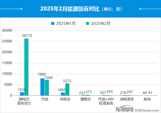 插电式混合动力车型本月投诉量冲顶,环比涨幅超过15倍,超过4成的投诉来自于自主品牌中型车,投诉问题点集中在“新旧款迭代纠纷”。值得注意的是,2月份汽油车型的投诉量不升反降,环比下降7.8%,占比降低了48.4个百分点。其中,逾8成投诉为质量问题,投诉故障点为“变速箱电脑板故障”、“部件老化”,集中在部分德系和日系品牌车型。
