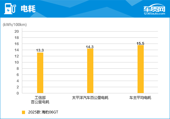 根据配置不同,2025款海豹06GT的工信部百公里耗电量也有所区别。通过对比汽车垂直媒体和车主平均电耗实测数据来看,均略高于工信部数据。