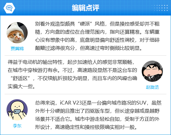 在用户口碑中,多数消费者对2025款iCAR V23的外观设计和车内视野表示满意。不过,也有车主表示该车在续航方面还是存在问题,主要体现在续航里程折损较为明显。
