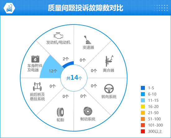 截至发稿,车质网共受理2025款海豹05 DM-i智驾版投诉24宗,其中单纯质量类问题的投诉10宗,涉及14个故障点。在这些投诉中,车身附件及电器的占比最大。在此前“百名车主评新车”的质量可靠性调查中,车主对于其质量可靠性给出较为客观的评价。其中,认为“非常满意”和“满意”的车主占比分别为35.5%和50.3%;认为“一般”的车主占比为10.4%;明确表示“不满意”的车主占比为3.8%。