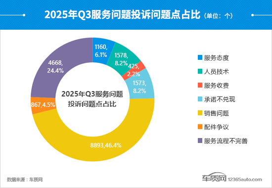 三季度的服务问题中,销售问题保持一家独大,但占比已不足总量的5成,较二季度降低了9.6个百分点。服务流程不完善出现反弹,占比提高了9.4个百分点,投诉问题数环比翻倍增长,“系统升级问题”卷土重来,成为车主集中投诉的问题点。