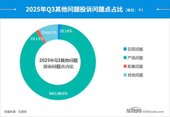 产品问题本季度虽然仍是投诉核心,但其势头已出现缓和迹象,占比降至9成以下,投诉问题数环比下降46.7%。三季度,其他问题“异军突起”,投诉问题数连续第二个季度环比增长,占比提高了4.1个百分点。