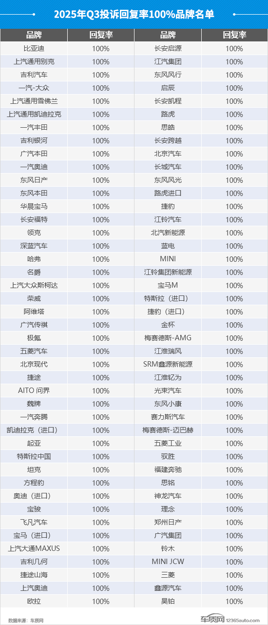 三季度投诉回复率达到100%的品牌共有86家,较上季度增加5家,这些品牌对待消费者诉求的积极态度以及重视程度值得肯定。当然,还有一些品牌表现不佳,如零跑汽车、一汽红旗和沃尔沃等,投诉回复率依然不足50%,对于车主合理诉求的重视程度亟须加强。