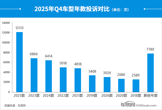 从车型年款投诉对比情况来看,2025款车型超越2024款车型排名首位,投诉量再度突破万宗,环比上涨30.1%。从投诉类型来看,服务问题成为其投诉主体,投诉问题点集中在“定(订)金纠纷”。2026款车型首次出现在车型年款投诉排行榜前9名中,投诉量较三季度暴涨逾8.7倍,服务问题成为投诉焦点,具体问题点为“定(订)金纠纷”和“不按约交车”。