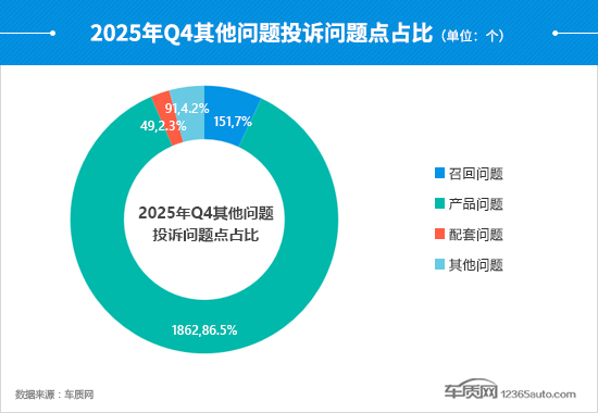 本季度召回问题出现大幅增长,投诉问题数环比翻倍增长,占比提高5.4个百分点。“召回方案不合理”成为投诉重灾区,与北京奔驰EQC有关。同期,产品问题虽然投诉问题数环比呈现增长势头,但占比不升反降,较三季度下降2.1个百分点。