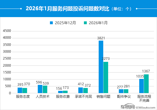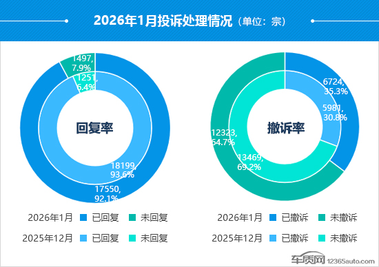 据国内领先的缺陷汽车产品信息收集和汽车消费者投诉信息受理平台车质网统计,2026年1月共受理车主有效投诉信息19,121宗(其中含第三方平台和后装轮胎投诉共74宗),环比下降约2%,同比上涨61%。