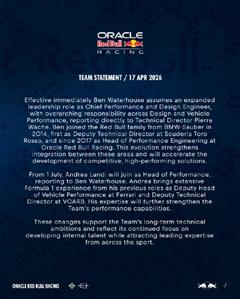 红牛技术架构重组 沃特豪斯执掌性能设计