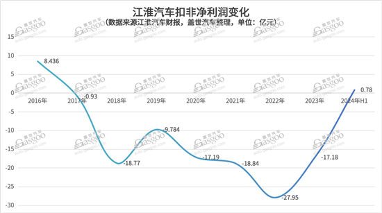 这标志着江淮汽车在经历了7年的艰难期后,扣非净利润终于实现转正。