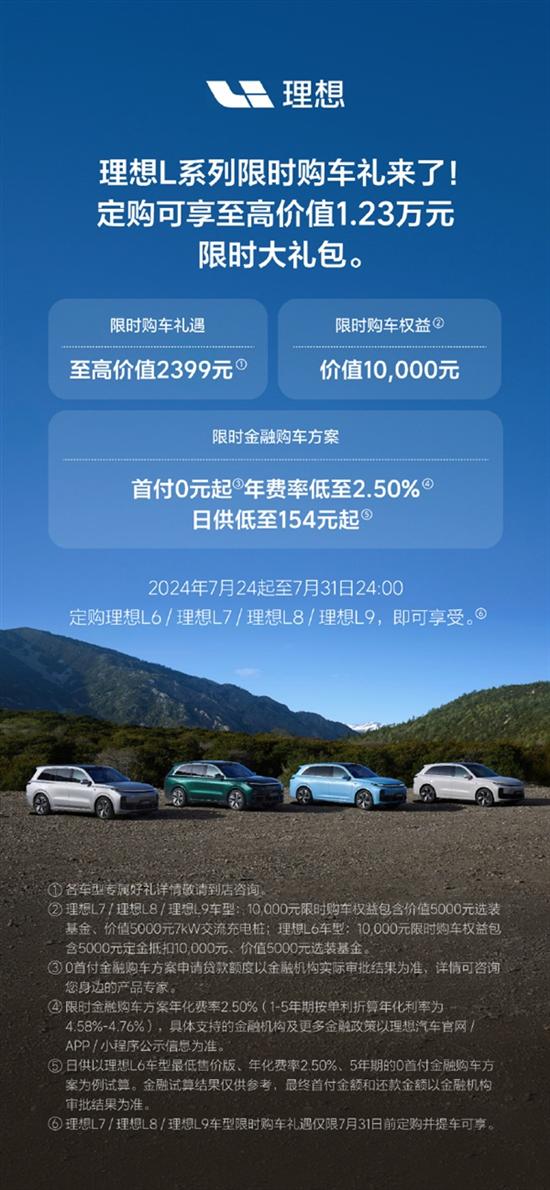 这项优惠政策的有效期为7月24日至7月31日24:00,在此期间,订购并提车L7、L8或L9车型的客户均可享受这些优惠。