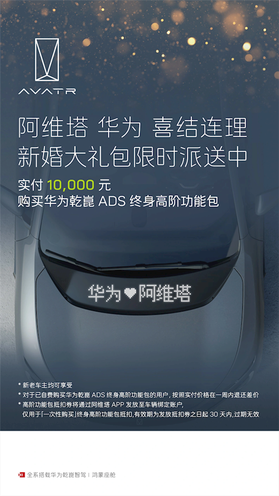 此次活动中,阿维塔将向用户赠送价值2万元的高阶智驾包抵扣券权益,使得用户能够以1万元的价格体验华为的顶级智能驾驶功能。