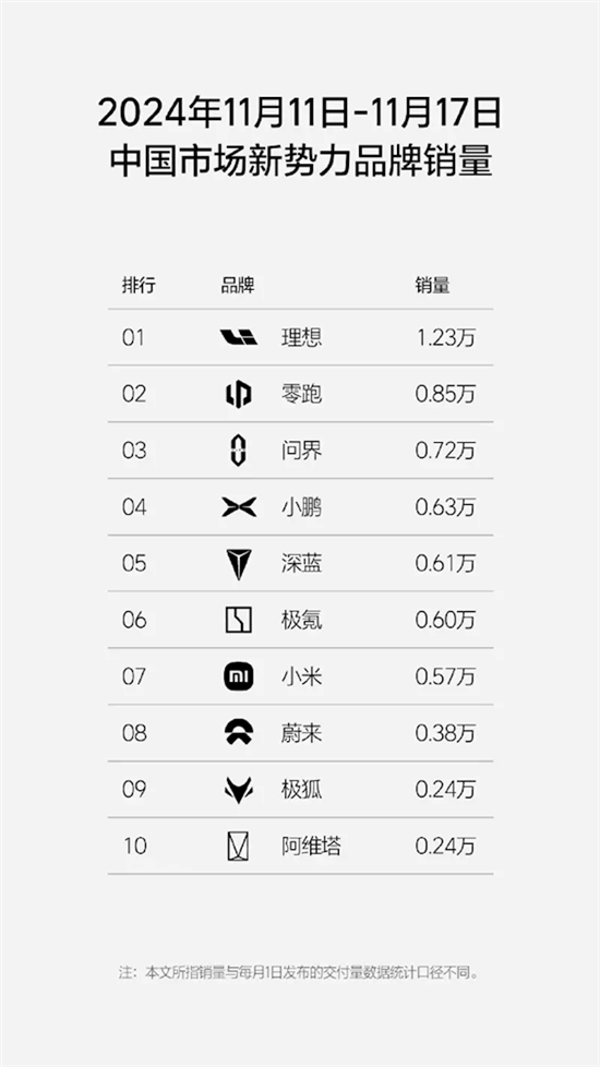在新势力品牌中,零跑汽车销量较上周增加300辆,保持第二名的位置;小鹏汽车销量显著提升,较上周增加3100辆,排名从第七名跃升至第四名。