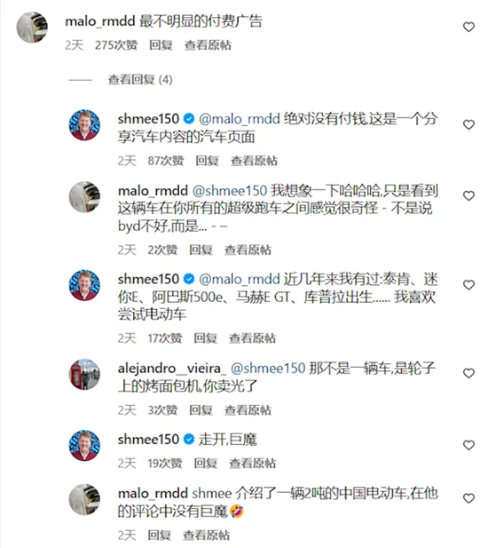 而此次shmee却买了台比亚迪海豹,并毫不掩饰对这台海豹的喜爱,却让一些海外网友不满了。