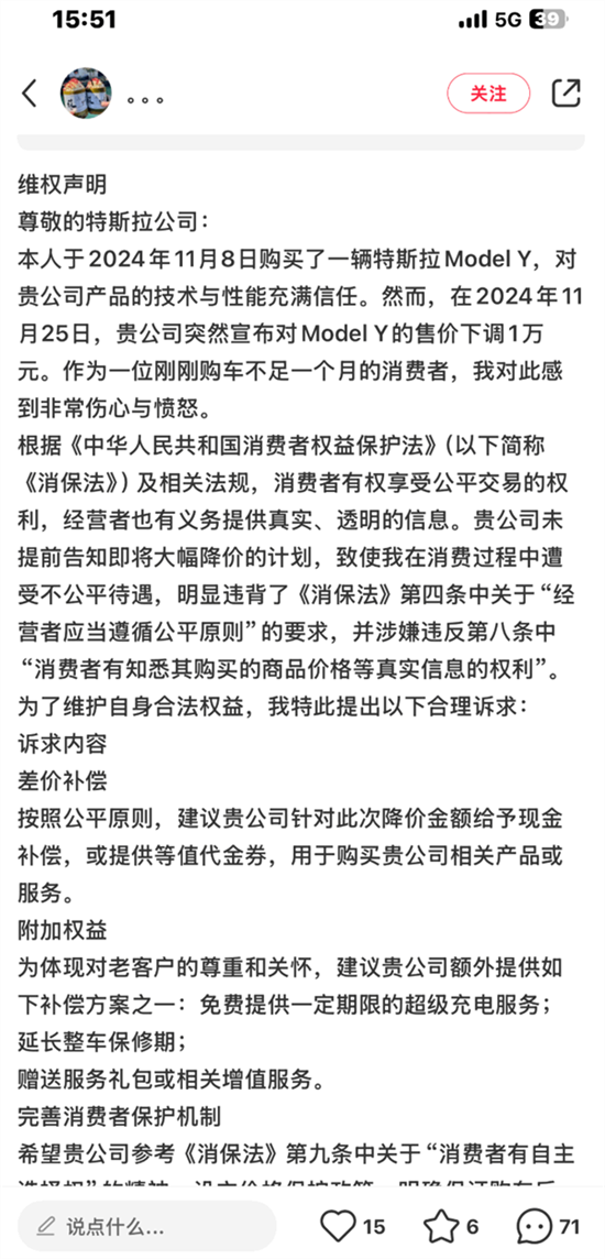 而特斯拉Model Y的突然降价,也让刚提车的老车主不满,还有车主对此次降价进行了维权。