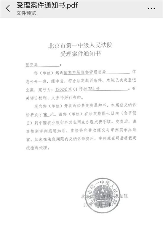 12月6日,特斯拉维权女车主在其社交平台发布了起诉国家市场监督管理总局信息公开案的受理案件通知书,目前该案件已由北京市第一中级人民法院受理,开庭时间为2024年12月19日。
