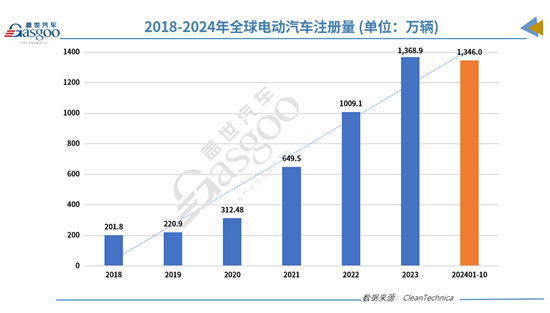 今年前十个月,全球电动汽车累计注册量达到1346万辆,已接近去年全年的水平(1368.9万辆),年底两个月通常是销量高峰期,预计全球电动汽车月度注册量仍有望继续创新高,全年累计注册量有望轻松超过1600万辆。