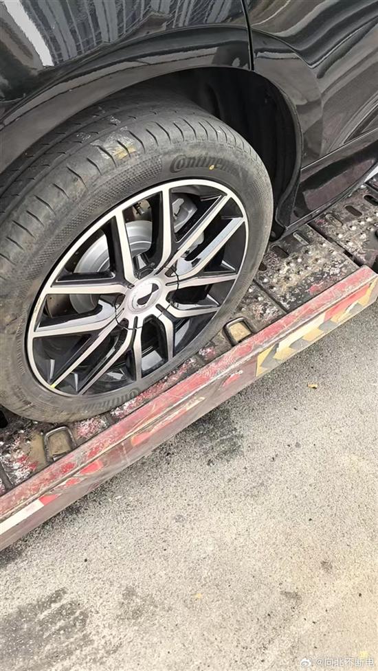 从他分享的图片看,这台腾势Z9GT的右后轮轮胎已经瘪了下去,但轮圈完好如初。