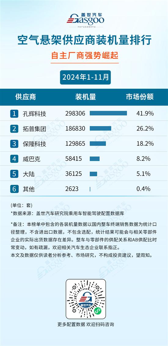 空气悬架供应商装机量排行:自主厂商强势崛起
