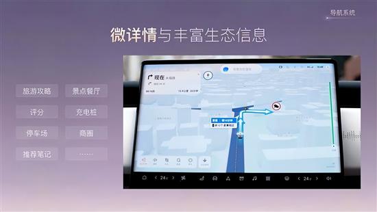 同时,系统还支持行程分享、充电偏好设置等场景化功能,从“工具导航”跃升为“全链路出行管家”。HUD车道渲染与红绿灯提示功能,进一步强化了导航的直观性与安全性,为用户提供了更加智能、便捷的导航服务。