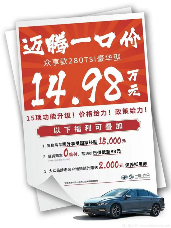 针对用户需求,大众品牌推出“一口价”政策及六重购车豪礼,例如: