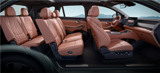 车内采用全新家族设计,配备15.6英寸中控屏、HUD抬头显示和竹木内饰,前两排座椅支持通风、加热和按摩功能,还配备车载压缩机冰箱和全景天幕。