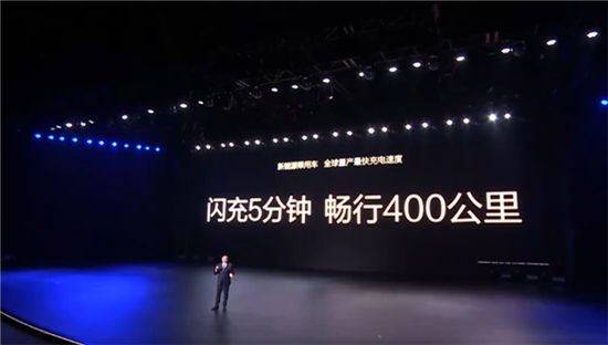 王传福表示,燃油车加一次油需要5到8分钟,续航里程500公里左右。现在比亚迪兆瓦闪充,同样也是5到8分钟就能补相同的里程,真正实现了油电同速的全新时代。