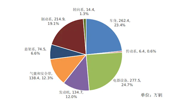从缺陷涉及的系统来看,电器设备、车身和制动系是主要缺陷部件,占召回总数量的67.2%。
