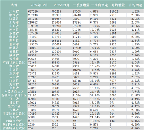 各省市方面,广东省以70万台的保有量位居榜首,江苏省(32万)、浙江省(30万)和上海市(23万)紧随其后。