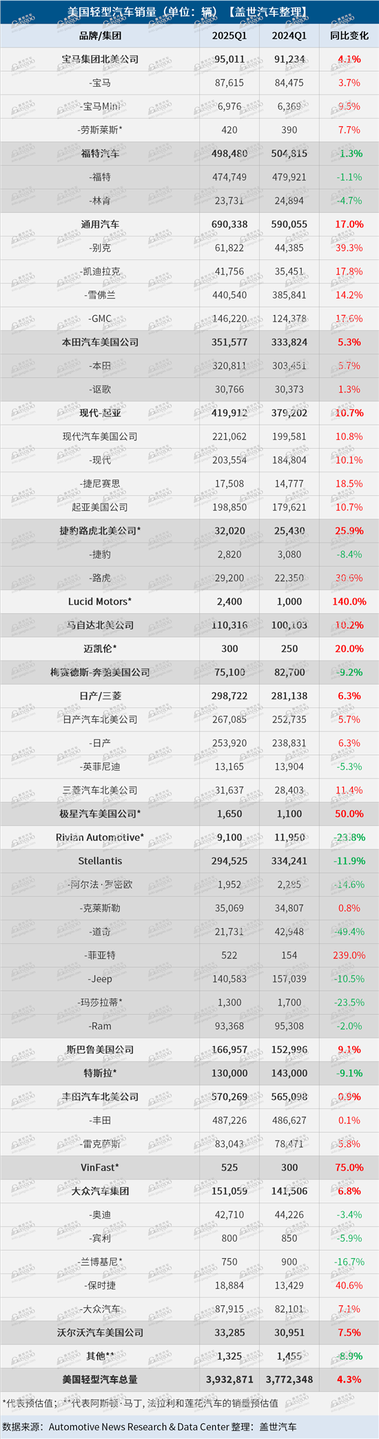 美国Q1车市:通用汽车增17%,Stellantis降12%