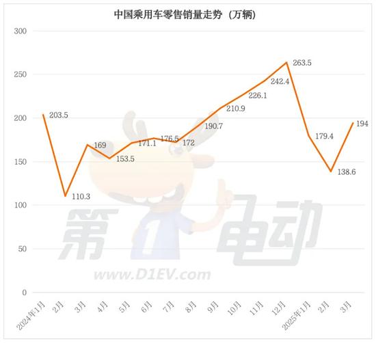 乘联会数据显示,2025年1-3月中国乘用车零售销量达512万辆,同比增长6%。其中新能源车零售量达241.9万辆,同比大涨36.4%,渗透率达47.2%,相比去年同期增长10.5个百分点。