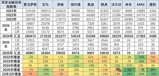 2025年的雷克萨斯的进口零售下滑1%,表现不错。宝马、奥迪、路虎的表现总体较强。