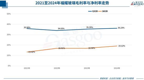 如此优秀的增速背后,更引人注目的是其较高的毛利率水平。数据显示,2024年,福耀玻璃毛利率为36.23%。也正基于此,其在不到400亿元的营收规模下,大赚了近75亿元。作为对比,华域汽车2024年总营收为1688.52亿元,归母净利润为66.91亿元。