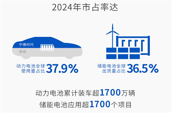 这在宁德时代身上体现得尤为显著。作为全球最大的动力电池供应商,宁德时代2024年在动力电池市场中继续保持绝对优势。韩国市场调研机构SNE Research数据显示,2024年,全球动力电池装车总量约894.4GWh,而宁德时代以339.3 GWh的装车量占据了全球37.9%的市场,稳居全球第一。