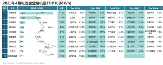 KERUI最新公布了2025年4月份各大电池企业装机量。