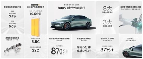 当前,极氪007的价格为20.99万起,极氪007采用800V高压平台。