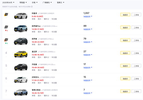 这其中,上汽通用旗下的雪佛兰品牌市场存在感及销量明显低于别克、凯迪拉克品牌。据懂车帝平台统计销量数据显示,雪佛兰品牌在售车型中仅科鲁泽4月销量破千,其余产品月销量均不足百辆。而别克品牌凭借“一口价”等促销手段在今年4月销量实现3.27万辆,豪华品牌凯迪拉克XT4更是以15.99万元起的“一口价”不断下探豪华SUV价格。