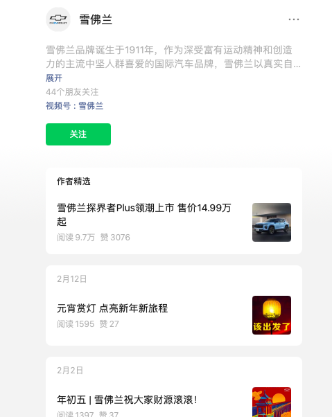 值得注意的是,在雪佛兰品牌公众号查阅官方公布销量数据时发现,该品牌官方账号在今年2月12日后便没再发布相关内容。