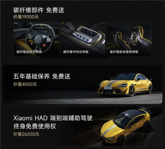 而小米SU7 Ultra的6月购车权益同样保持不变,全系继续赠送价值19000元的碳纤维部件(碳纤维运动方向盘、碳纤维中控台饰板以及碳纤维前排座椅靠背)、价值4000元的五年基础保养以及价值2.6万元的Xiaomi HAD端到端辅助驾驶终身免费使用权。