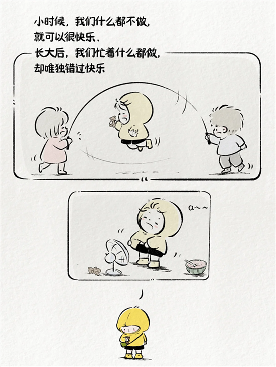 短片用走心的文案和治愈的漫画,勾起了成年人内心深处 “还想再当一次小朋友” 的念头。