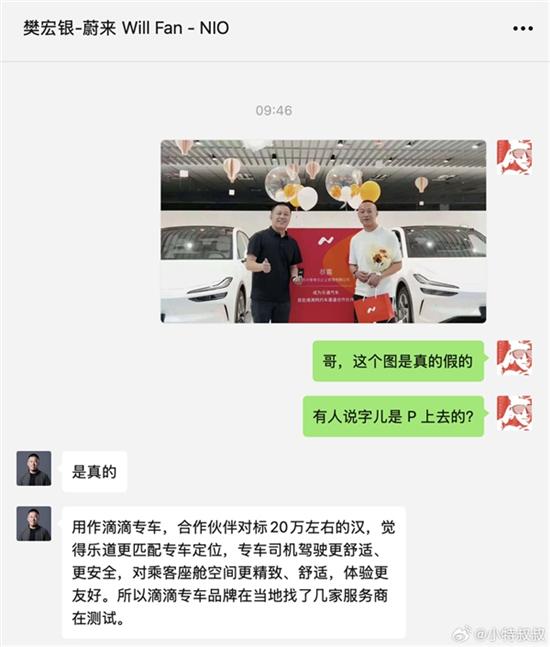 于是博主向杭州蔚来汽车销售服务有限公司负责人樊宏银求证,没想到对方证实了这件事。